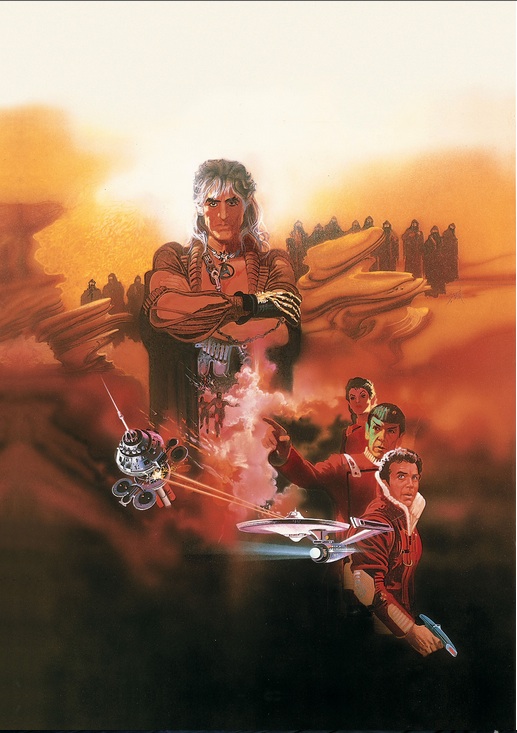 I’ve always loved this poster, as for me it epitomizes that film perfectly. It tells me that this is going to be a story about the relationship of Kirk and Spock, and also a struggle against Khan who’s survived on the deserts of Ceti Alpha V and is now out for vengeance. The fact that it’s drawn, rather than photographed, allows the artist to try and draw together all of the elements and emotions within the story and try and express them to the potential viewer without giving too much away. This poster succeeds on every level for me, and it’s far superior to today’s cut-and-paste-on-a-Mac movie poster design as beautiful hand-drawn art manages to truly capture the drama and emotion of the film and give those who see the poster a sense of the movie’s soul, so to speak. I’m not quite sure who drew this one, to be quite frank, but it’s good.