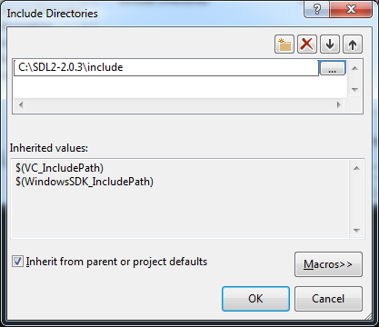 It’s a similar process for the Library Directories, too. I found that using the x86 libraries seemed to work best, as compiling my test program with the x64 binaries lead to an explosion of unreferenced symbol errors…