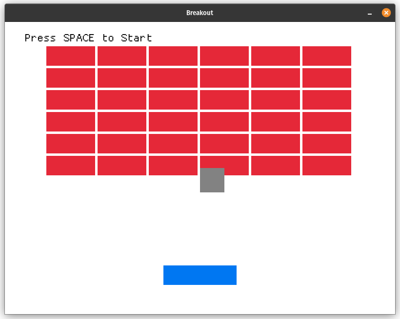 This is the opening state of the game, and rather than being launched straight into it, you get a start screen… which is a nice opportunity for a breather before smashing blocks! When you press start, you get sent to the main game state.