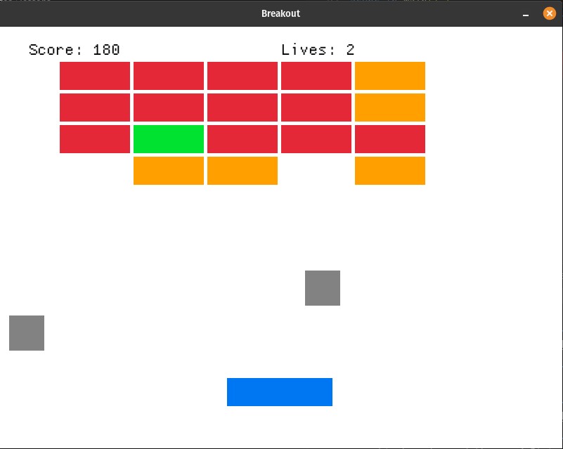 As we see now, we have two balls in motion, along with one of our green brick power ups! It took a little while, but we’ve now completed a simple but complete game in Macroquad!